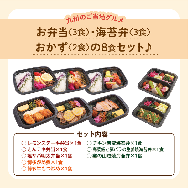 UMACAミールの人気の冷凍弁当と冷凍海苔弁と冷凍おかずを8食セットにしました。