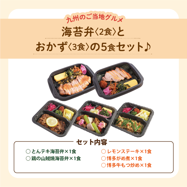 UMACAミールの人気の冷凍海苔弁と冷凍おかずを5食セットにしました。